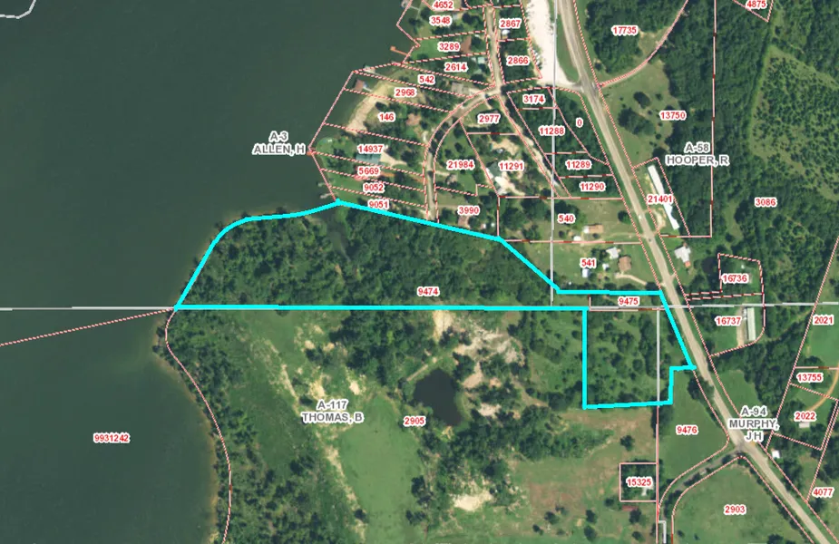 One of a kind, 18+ acres with approximately 1000 ft of shoreline, beautiful hardwoods, rolling with a bluff over looking lake with breathtaking views. Good deep water, road access of County Road and state highway.Do NOT enter the the old house or shed on Hwy 21. Prime building sites, great locations.