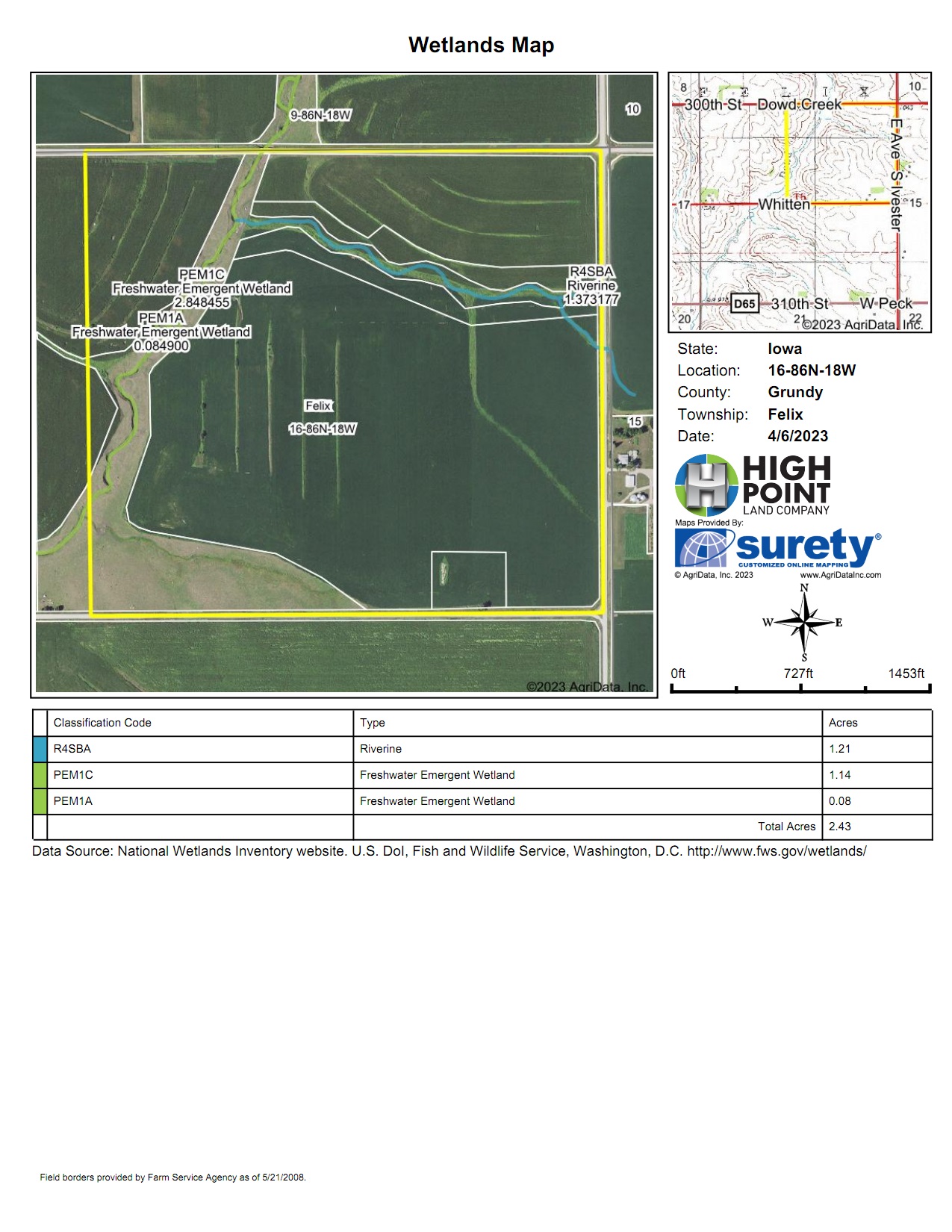 Located in Section 16 of Felix Township, just Northwest of Conrad, IA sits 180+/- gross acres of beautiful Grundy County farm. This farm is made up of 147.10+/- acres of FSA certified cropland, which boasts in average CSR2 of 83.1 across the tillable acres. The cropland consists of primarily of the highly sought after soils of both Dinsdale Silty Clay Loam and Tara Silty Clay Loam.