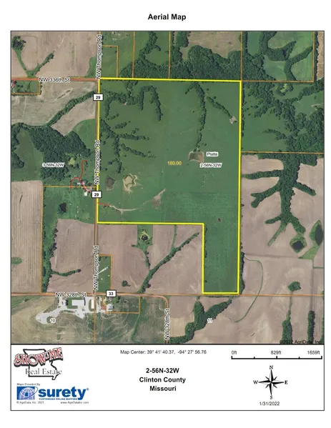 180 Acres currently in pasture. Northern Clinton County, MO off of NW Thompson Rd Stewartsville, MO. Potentially 150 +/- Acres Tillable.