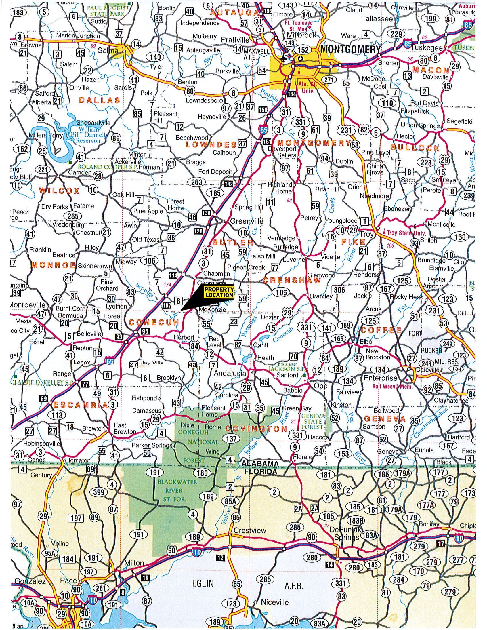 Power is provided by Pioneer Electric and water is provided by Butler County Water Authority. Both utilities run alongside the property on Booker Road (CR 6). This is the ideal tract for someone who wants to farm or lease out the 89 acres of open fields while enjoying a place to hunt, ride four wheelers/atvs and enjoy the timber investment. If one so chooses, he could plant the open land in pine which has ideal soils for timber growth.