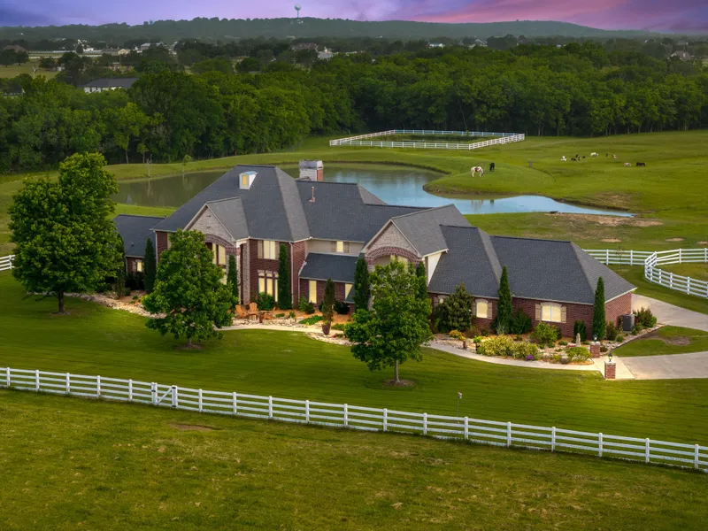 Experience refined country living with this extraordinary 4-bedroom, 4.5-bathroom estate, perfectly positioned on 20 pristine acres of privacy just minutes from downtown Bixby. Behind a gated entrance, this property blends timeless craftsmanship with modern luxury, offering the ideal retreat for equestrians, small scale farming, or families seeking space and sophistication.