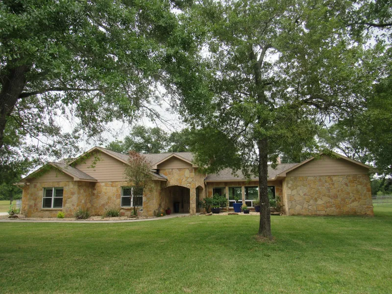 Conveniently located between the two quaint country towns of Cat Spring and New Ulm, and tucked away on a private and partially wooded 7 + acres, you will find this meticulously maintained & masterfully designed custom home. As you stroll up the sidewalk notice the landscaping that enhances this 3 (or 4) bedroom , 3 bath Austin Stone and Hardi-Plank striking beauty. Enter the front door and you will see this home at its finest: The open concept kitchen, dining and living area has vaulted and tray ceiling and is outlined with front and back windows to view the beautiful surrounding trees and pastures! The living room, with its unique natural lighting, also features a stone fireplace surrounded by custom built-ins. If entertaining is on your list, this home has it all. The French doors off of the dining and game rooms tie in both the outdoor and indoor living areas, which can handle even the largest gatherings. The outdoor area boasts a fireplace and can comfortably seat a crowd. Top this off with the hard wired surround sound system that can be used both inside and out. This custom home holds high quality finishes that can be seen throughout. The game room includes a bar area with granite counter top, glass front cabinetry and cathedral ceiling. The enormous centrally located kitchen includes a large island with a vegetable sink, plenty of under cabinet storage, and seating for four. The granite counter tops, custom-built cabinetry, stainless steel appliances, including a 5 burner gas stove top, Electrolux oven and microwave unit, and under counter lighting that complete this dream kitchen. The Master Suite has an exit to the back and is just off of the main living area. The master bath features slate flooring, slate/ tile walk-in shower that includes a rain shower head plus spray heads, large tub, double vanities and a large walk-in closet with built-ins. On the rear side of the home just down the hall from the kitchen, you will find the study (or 4th bedroom), full bathroom, and the remaining two bedrooms. The garage has been converted into an elaborate weight room with a durable epoxy floor, dog-bath system and an enclosed washer-dryer space. Just outside the back entrance is the 40 x 40 workshop with half bath plus 40 X 15 attached covered concrete pad with RV hook-up and emergency KW80 back-up generator. Sprinkler system with automatic fertilizing system on approx. Plus there are two mosquito magnets to help keep the pests away while enjoying the outside area around the home. The home is also equipped with a monitored alarm and fire detection system.