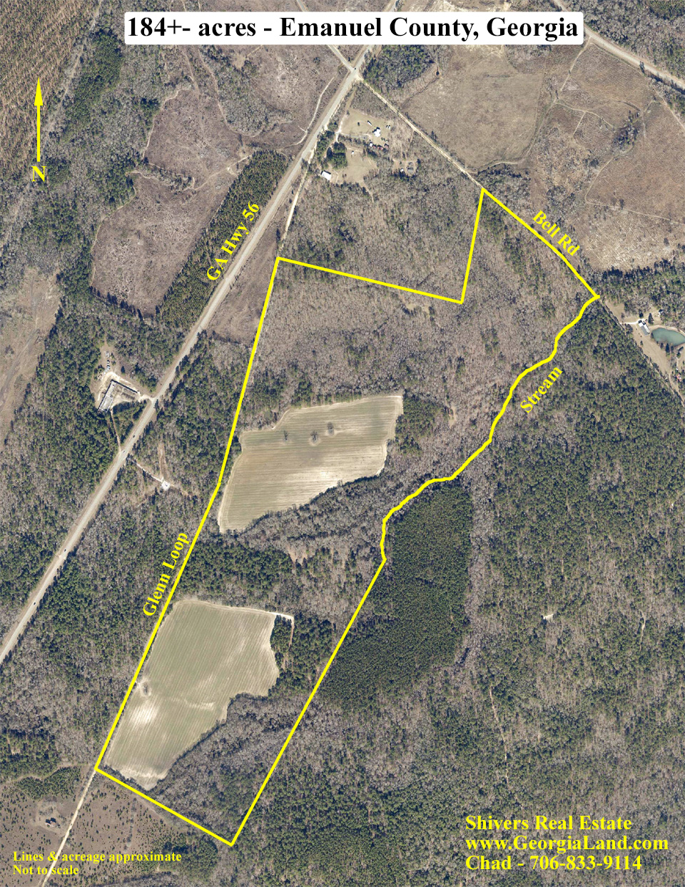 Pretty property in northern Emanuel County with farm land and timber land, easy access to Highway 56, convenient to Swainsboro, 6 miles from the Ogeechee River.