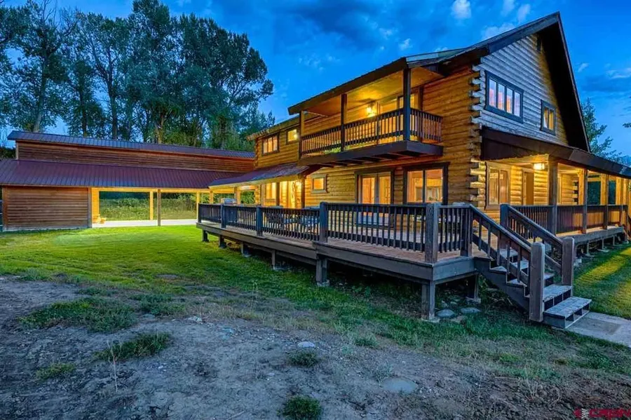 Borders over 600 foot of river! 3200 sq. ft. home, 1 mile to town, water rights, fishable pond, stable, and multiple storage sheds. This property has been a successful vacation rental and is 4 beds and 3 bath. The attic has also been finished offering usable space on the third level. Listen to the water as you relax on the large back porch, looking north over the river or roast smores over the custom firepit. Note: Home in process of being re-stained and re-roofed by Seller. The 27'x44' connected carport can hold multiple vehicles, and has a 9'x20' storage room with garage door for your river raft, bikes, and other toys. Stable includes six 11'x11' enclosed stalls 10 foot covered breezeway in front to support you all season long. Also includes a 12'x13' tack/wash/feed storage area with concrete floor. Store your atvs and snowmobiles in the separate 20'x50' insulated quanset hut with garage doors on both ends. And to top it off, take a beautiful stroll around the pond in your front yard - which has supported large trout in the past. Offering a massive circular driveway for easy access, this property is truly unique and won't last long. Also includes a 1300 sq ft older commercial building that fronts Hwy 160 with gas furnace and bathroom. Tremendous package. Call today.