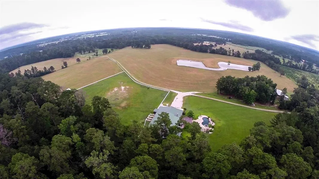 Cripple Creek Ranch is located just 80 miles from The Woodlands, TX, and consists of 186 acres of rolling pastures and woods, giving abundant opportunity for recreation, leisure, hunting, agricultural production and well fitted with improvements. Much of the western boundary adjoins the Davey Crockett National Forest, offering a backdrop of tall mature timber. The home consists of approximately 4280 square feet, offering a main master suite, and full guest quarters with two additional bedrooms, that can be utilized as a traditional split plan home. The large front patio is outfitted to watch the morning news, livestock and wildlife all at the same time under an insulated, pest controlled, well appointed environment. The horse stables, garage, UTV parking are incorporated into the building as well. On the opposite southern side, the large outdoor kitchen, covered by a cedar pergola leads to the swimming pool and hot tub.