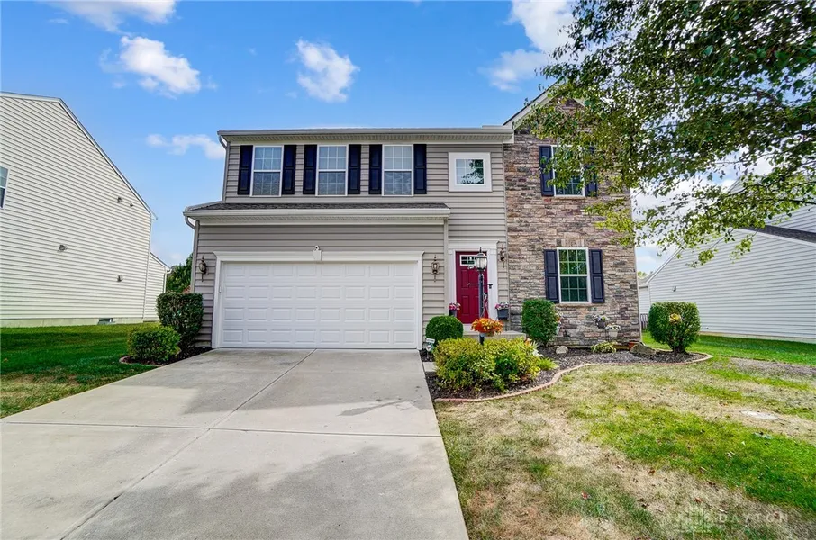 Spacious and meticulously maintained, MOVE IN READY home in Beavercreek Township! Located on a cul de sac, this 4 bedroom, 3.5 bath home with finished basement is light and bright with tons of windows and 9 ft ceilings! Main floor features open concept familyroom with gas fireplace, diningroom with tons of windows and kitchen with gorgeous new flooring throughout (2021). The kitchen features stainless appliances (2018), granite counters and pantry. The diningroom opens onto the wood deck with a fabulous view of the backyard and ready to plant garden! Upstairs features HUGE primary suite with walk in closet and ensuite bath with stand alone shower and large jetted soaking tub. Three additional bedrooms, hall bath and convenient laundry area round out the second floor. The finished basement features a huge rec room currently used as a sewing room and additional office space as well as a full bathroom and loads of unfinished storage space. Other features include: water heater 2022, garage door 2019, attic insulation 2024, gutter covers 2024, roof 2019, fence 2019 Close to WPAFB, shopping and dining, all in Beavercreek Schools! You do not want to miss this one!! Assumable VA loan with 3.25% interest rate!
