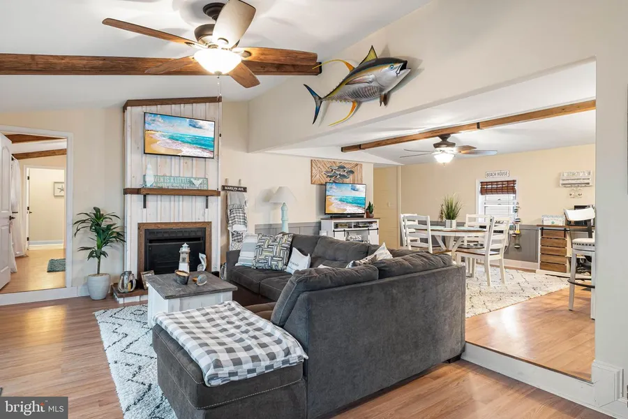 Welcome to 35835 S Canal Street - a truly one-of-a-kind coastal retreat that redefines modular living. Extensively renovated from top to bottom in a refined coastal farmhouse style, this spacious 4-bedroom, 2-bath home offers approximately 2,368 sq ft of thoughtfully designed living space and is packed with standout features inside and out. Outside, you'll love the newly built oversized composite deck with premium railings and built-in lighting, perfect for relaxing evenings. There's a sleek custom shed with a roll-up door - great for pulling in the INCLUDED golf cart w/ NEW batteries - crushed seashell landscaping, a separate blacktop driveway, and even a included hot tub. The fenced backyard adds even more usable space with additional decking, front shed access, upgraded trash can enclosures, and a high-end outdoor shower setup. Inside, the open main living area features warm wood accent beams, a fireplace, and a spacious dining area that flows into the updated kitchen. Enjoy newer black stainless steel appliances, a farmhouse sink, sleek countertops, and eye-catching shiplap touches throughout. The standout three-season sunroom offers its own Enso-brand mini split for year-round comfort, auto controlled shades, and even has heated floors. The primary suite easily accommodates a king-size set and boasts two oversized walk-in closets, a dedicated linen closet, and a spa-inspired bathroom complete with a high-end temperature-regulated shower system. Across the home are three generously sized bedrooms, each with charming sliding farmhouse closet doors. The second full bath is outfitted with a cozy wood-accented vanity and a corner tub/shower combo. A Whirlpool Cabrio washer and dryer adds modern convenience to the laundry area. This home is loaded with smart tech, including exterior security cameras and an Ecobee thermostat for energy-efficient comfort. Bring the boat! PREPAID boat slip in your front yard for the remainder of the year. Land lease is comparatively low at just $1,056/month. This home is being sold fully FURNISHED, with only the seller's personal items excluded. This stunning home is priced to sell and will not last long. Whether you're looking for a year-round residence or a coastal getaway with style and substance, 35835 S Canal Street is a RARE find in the Long Neck area. Schedule your showing today and experience the charm for yourself!