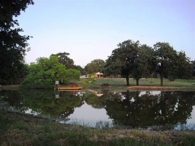 Improvements: The entire ranch is low fenced. A two-wheel drive road meanders from the front gated entrance to the ranch headquarters and cabin. The cabin is an older house with open floor plan and a scenic deck that overlooks the pond which is located just a stones throw from the porch. The house is all electric and has a 750 gallon septic system. The inside of the cabin has been sheet-rocked, and has a few of the cabinetry fixtures; the entire interior of the house needs to be finished out. Near the house is a 40 X 60 pole barn with galvanized roof which is used for equipment and tractor storage as well as a 12x14 walk-in cooler with concrete floor located in the back. Below the barn is a small set of livestock working pens. Fences on the ranch range from good to excellent. There are several blinds and feeders that convey with the sale of the ranch. Electricity exists at the windmill, barn and house.