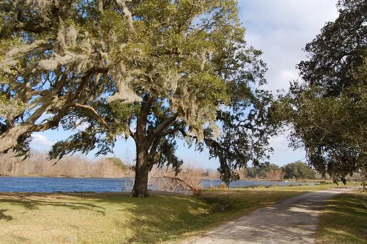 is the 20 acre crescent shaped Collin's Lake which is surrounded by century old live oaks. If the lake does not offer