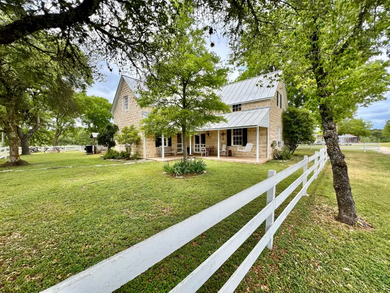 Improvements: The two historic homes have been well maintained and complement their Hill Country setting. The two-story limestone main house is believed to be built in the 1890's and has 2-bedrooms, 2-bathrooms, a formal dining room and living room. Adding to its charm are the old stone fireplaces in the living room, one in the upstairs bedrooms, and a wood-burning stove in the dining room. The front porch of the house has a tranquil view of the main field on the property and the custom masonry-lined pool and waterfall overlook nearby Cherry Creek. There is an old smokehouse with a cellar beneath it that is currently used as the laundry room. The wood framed Blue House was built in the early 1900's and has 2-bedrooms, 2-bathrooms, a kitchen, breakfast room, living area and small basement. There is a third house that has 2 bedrooms 2, bathrooms and is currently being used as a caretaker's house.
