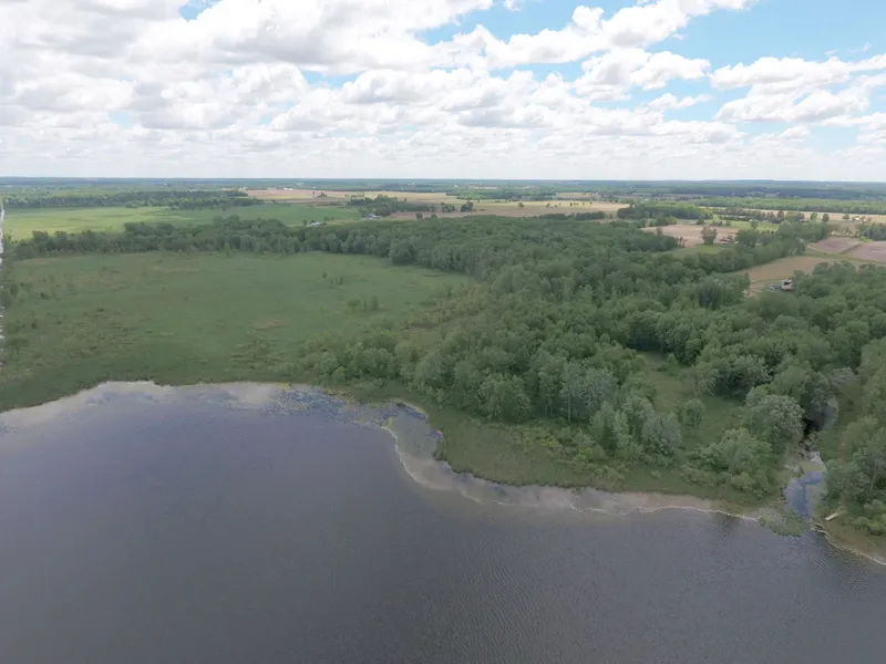 80 Acres overlooking Bingham Lake - - Woods & Wildlife! You also get a nice 3 bedroom, 2 bath, ranch style house with an attached 2 car garage, a 40x100 Pole Building with a huge workshop, a neat 2 story barn and the cutest little cabin in the Woods sitting high on a hill overlooking the lake. The home has had lots of remodeling/ updates done with newer roof, kitchen, windows, garage & septic. It also has ceramic tile flooring, Black oak wood walls in the family room, a free standing wood burner that heats most of the house, an office/den and a large laundry room with tons of storage. Then outside you have a massive pole building with a large workshop area, a storage area and an area for animals and also a small barn.