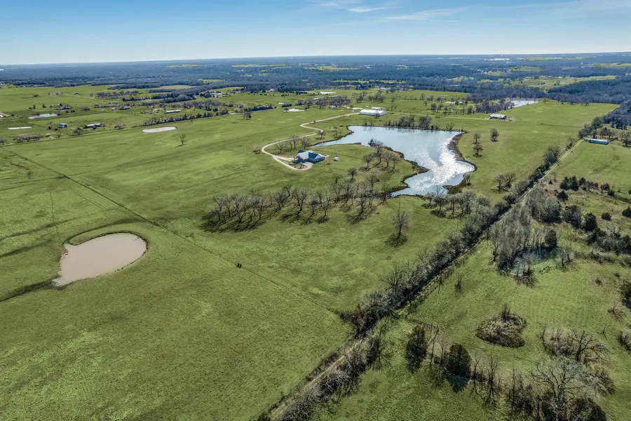 Experience breathtaking Texas sunsets on this 189+ acre ranch. This exceptional property boasts three distinct residences. The primary home spans an impressive 5,533 square feet offering lavish living spaces and notable features like separate mother in law suite with one bedroom, one bathroom, full kitchen, and living area. Relax in this inviting in-ground pool with a spa and water feature, and a mesmerizing view of the lake. The second residence offers 2,268 square feet, and the third, with 2,872 sq.ft. With 2 barns, 4 loafing sheds, 4 ponds, and expansive pastures, this property is a haven for equine and cattle enthusiasts. A 16,000 sq. ft. warehouse complimented by two 400 sq.ft. offices, a full kitchen, 2 baths, and second story loft with full bath provides versatility and convenience. This landscape, adorned with scattered trees, enhances the beauty, while a gated entrance ensures p...