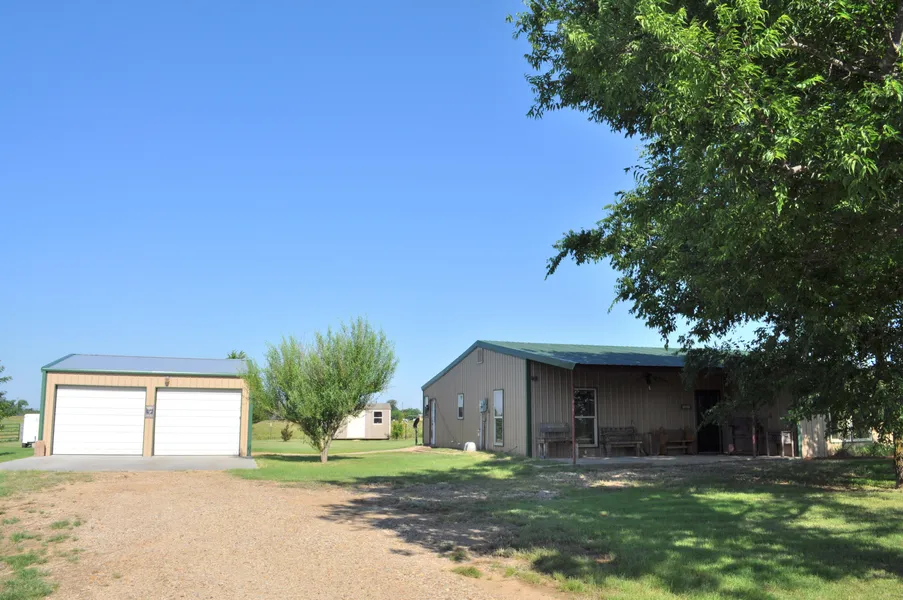 Ranch style living in the country. Easy access to I-30, no restrictions and all the room you could want! Cozy and inviting home with open Kitchen concept and an office nook. Energy efficient metal home, wood interior, tin ceilings, slate look tile floors. Large master bath, mudroom, french doors off of one room. 2 storage buildings, one garage or workshop, barn, fenced for livestock. Beautiful crepe myrtles, roomy garden spot, covered porch.