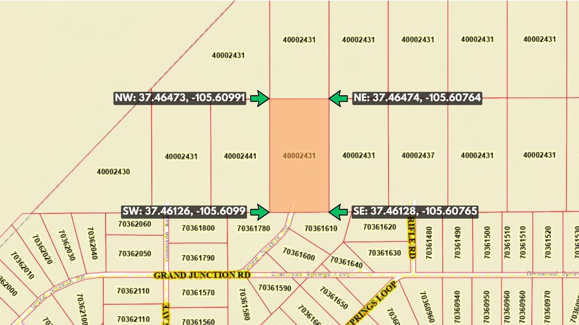 Northwest Corner: 37.46473, -105.60991