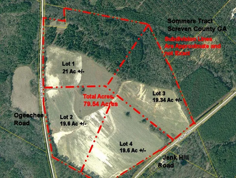 This mostly open agricultural field property is located in SW Screven County of Hwy 17 at Ogeechee Road. Paved road frontage on Jenk Hill Road and Ogeechee Road make the property very accessible. Power is on the property and there is an older 4 well off Ogeechee Road. Tract would work perfect for a center pivot irrigation if you buy all lots or divide into several home sites. Property has excellent opportunity in a in a good neighborhood between Sylvania and Statesboro.