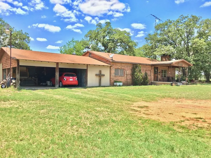 The brick country style ranch house has 1,410 sq ft living area, central air & heat, 3 bedrooms, a recently remodeled hallway and bathroom, and the bath is equipped with a full-size step-in tile shower. There is also a wonderful and fully functional brick fireplace which is the centerpiece of the family room, a spacious country kitchen, attached storage rooms, laundry room, a large covered front porch and an attached, open 2 car garage. The home is on a private septic system and the water supply is Comanche County WSC.