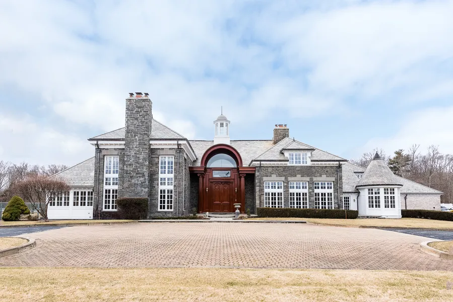 Welcome to Pond Lily, a majestic estate located on a horse farm with an inground pool and pool house, guest/caretaker's cottage, nine stall in and out barn and out-buildings. Enter through electronic wrought iron gates and travel along a tree lined private drive to a custom designed and historically inspired stone and slate home. Located on pristine grounds with endless vistas and a private pond, the home is designed to comfortably accommodate and entertain a large family and many guests. The stately two-story front entrance welcomes you to the large great room with marble flooring and fireplace with a custom curved mahogany staircase. The formal dining area is an exquisite setting for all your entertaining dreams. Or choose to relax and read in the mahogany two story library with a stunning coffered ceiling accessible through the custom-built mahogany stairway or by elevator. The home features a magnificent first-floor master suite with his and her private bathrooms and dressing areas including a sauna and steam room providing endless storage for both clothing and accessories. The second-floor features six-bedroom suites, with an additional guest/staff living area. Car enthusiasts the gorgeous 12 car garage will accommodate your collection. Outbuildings include an additional 6-bay garage to store farm equipment and estate supplies.