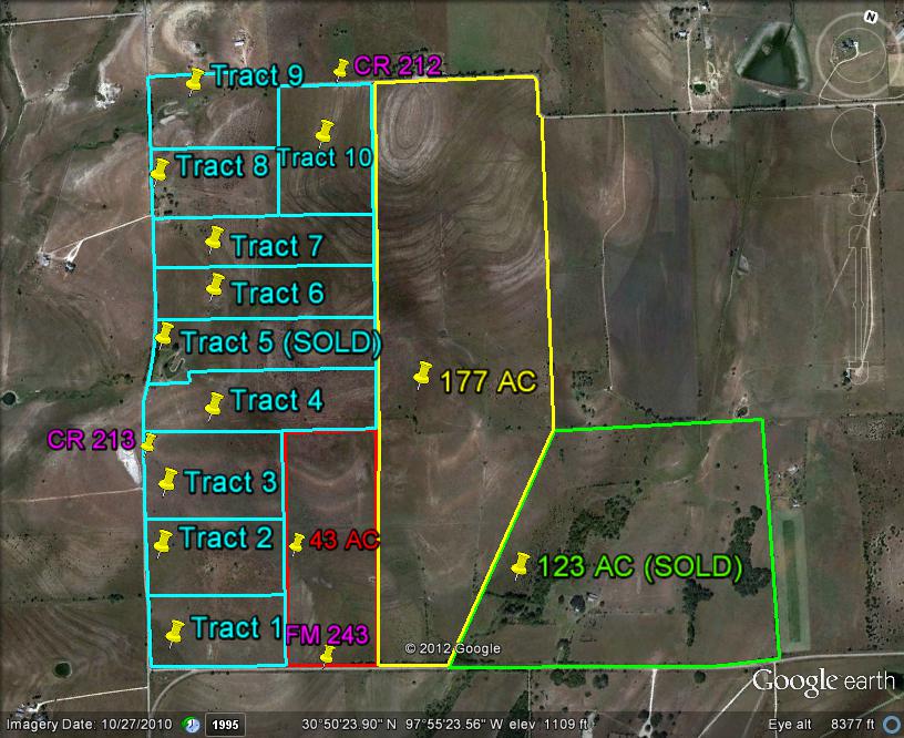 All tracts, except for tract 5, are available, including a separate 177 Ac tract and 43 ac tract or both.