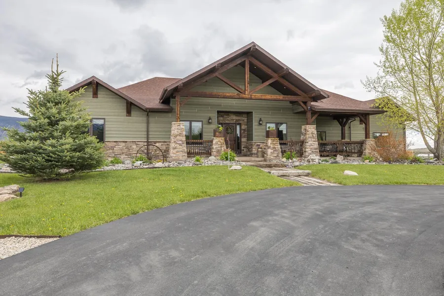 Huge, vaulted entry portico and huge covered rear patio area with hot tub. Oversized 1142 sf, 3-car heated and insulated garage. Interior garage water fixtures. The paved driveway with circular front entry, exterior livestock fencing and maintenance free siding with tons of beautiful stonework make for a very striking visual appeal. Very private setting at the end of a private road cul-de-sac with 360 views of the lower Southfork Valley.