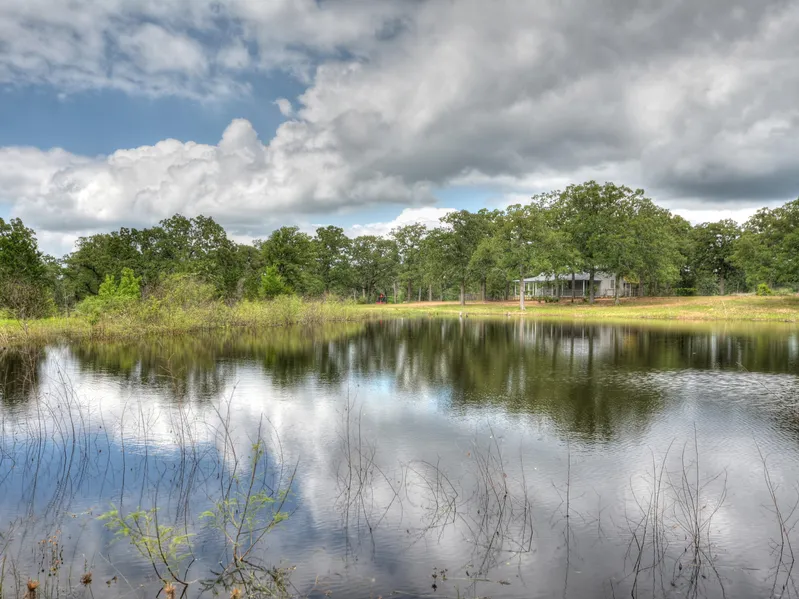 Diamond G Ranch - One of a kind, gorgeous secluded ranch with frontage on Pricklypear Creek, Ponds/Lakes for fishing, Beautiful tall oaks, rolling pastures, wildflower & abundance of wildlife. Quaint 1800's farmhouse, wrap around porch has panoramic view of 2 lakes, Updated kitchen, granite counters, 15 SEER AC w/Heat Pump, Clack Water softener, Long leaf pine floors,stone fireplace,stone patio,outdoor shower. Please keep gates closed at all time,wear boots. 2 hours to Houston/San Antonio, 1 hour to Austin.