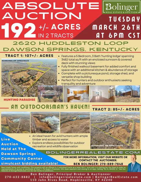 Join us for an exclusive land auction featuring 192+/- Acres of pristine countryside divided into two captivating tracts.
