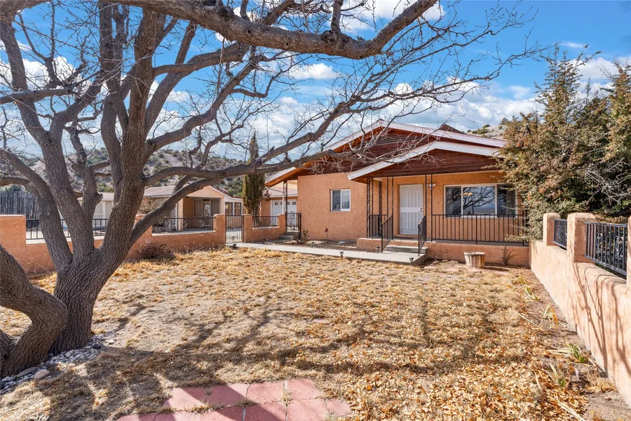 Simply sweet, Pitched Roof Northern NM, part Adobe home and detached Guest Apartment located above the Lush Espanola Valley. On the Westside of the Rio Grande River, lies a well-loved family residence, that offers much to those looking for privacy (the property is 1 acres plus!), close access to the town of Espanola, and a short drive to Los Alamos. Single level, spacious living areas and bedrooms. The large porch with the ability for screens is perfect for dinners and parties or could make a fabulous green house. Three bedrooms in the main house, two bathrooms, attached two car garage. Heaters in house are electric, all appliances electric. Facing the Valley, a fully enclosed yard with healthy fruit bearing tree. There is ample storage in the garage as well as two separate storage areas for tools, gardening equipment, and more. Below the main house is a fully equipped guest apartment with kitchen, living, 1 bedroom, and full bath. Heater in guest apartment is natural gas, there are Two septic systems, 1 for house 1 for guest apt- riser installed and new cleanouts in front yard outside main house.