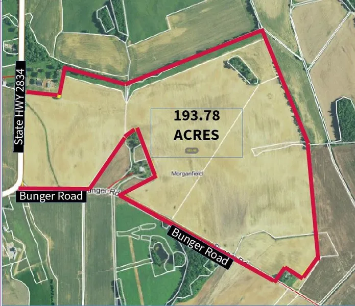 193.78 +/-acre farm with approximately 188 productive tillable acres. The predominant soil types are Alford and Uniontown Silt Loams. The farm has been partially tiled.It is located on the Northeast Corner of Bunger Road and Blue Road near Spring Grove, KY just off of HWY 56.