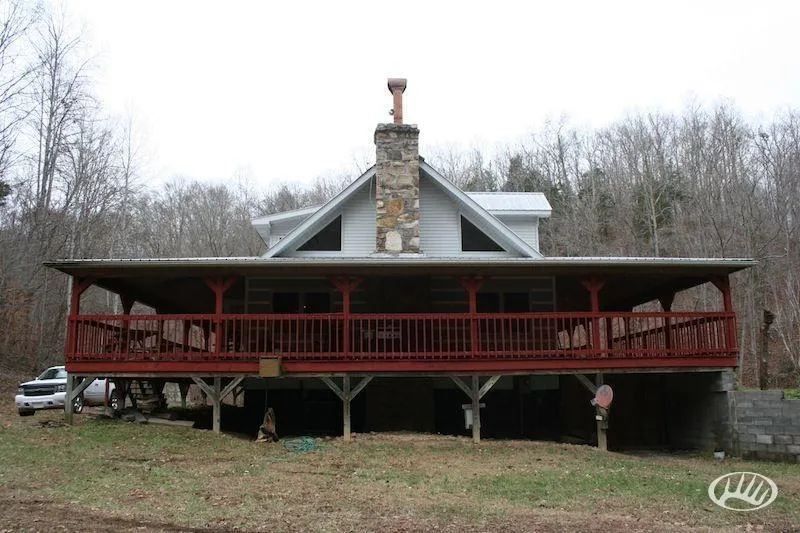 Who hasn't dreamed of owning a rustic lodge style home in the mountains with plenty of room to roam? Now is your chance to make that dream a reality without the inconveniences of actually living in the mountains. The look and feel of this home and it's surroundings will make you think you're in the Smokies each morning as you sip your coffee on the large wrap around porch with scenic, wooded ridges in all directions. With thundering gobblers in the spring, a flowing creek in the summer, beautiful autumn colors and rutting bucks in fall, and quiet, mild winters, this property is an ideal vacation home or permanent residence. Once inside you're drawn to the spacious great room with vaulted ceiling, stone fireplace and chimney with log mantle. The centerpiece of the chef's kitchen is an industrial 6 burner, dual oven, gas stove featuring a large grill area. The lodge feel is complete with k...