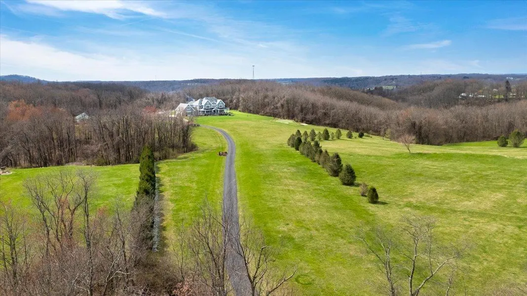 As you step into the grand foyer, you'll be embraced by 10' ceilings & a sense of unparalleled luxury. 4 beds, 5 Full & 2 Half Baths, including a 1st floor bedroom, this home offers ample space for relaxation & entertainment on 18 acres. The gourmet kitchen has maple cabinetry, black soapstone countertop, dual basin & prep sinks, electric oven, & a gas cooktop. The open-concept living area includes 2 wood fireplaces, perfect for cozy evenings. Entertain w/ ease in a finished basement, complete w/ a gym, game room, & full bar featuring leather-finished marble countertops. Sliding doors open to a side covered patio w/ a fireplace. Step outside to your own private oasis, featuring a 20x40 inground heated, saltwater pool, a 6-person hot tub, & a grill area. For golf enthusiasts, enjoy a 2,000 sqft putting green w/ 2 Sand Bunkers & 3 Tee Boxes. Mudroom w/ dog washing station. Equestrian amenities include a Morton barn w/ 3 finished stalls (expandable to 8), a heated tack room, & a bathroom.
