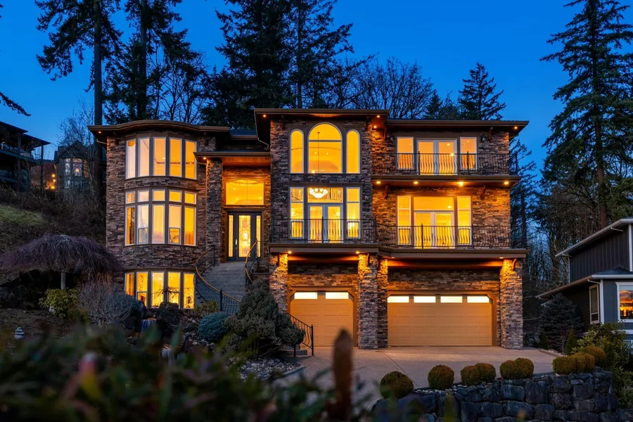 Where art and craftsmanship converge, this newly remodeled home on a sprawling Camas estate showcases stunning upgrades that harmoniously blend sophistication, comfort, and modern amenities. Designed for both entertaining and relaxation, this residence exemplifies elegance and style with over 6,100 square feet of meticulously crafted living space. It features 5 bedrooms, 4 full and 1 half bathroom, complemented by a floor plan that seamlessly integrates indoor and outdoor living, perfect for hosting gatherings. Every aspect of this property has been thoughtfully redesigned, highlighting high-end finishes and state-of-the-art appliances, including a gourmet chef's kitchen equipped with never-used Decor appliances, custom cabinetry, and a large island ideal for culinary enthusiasts. Enjoy outdoor cooking in the covered barbecue and kitchen area while entertaining guests, as expansive living and dining areas afford breathtaking views of the Columbia River and Portland lights from nearly every room. The primary suite on the main level serves as a true retreat, complete with a new spa-inspired bathroom that features a soaking tub, a luxurious walk-in shower, dual vanities, and a spacious walk-in closet. Additional oversized bedrooms are bathed in natural light, while the lower level is perfectly designed for an in-law suite or an ADU, offering versatile bonus space. A magnificent circular staircase provides a grand entrance, and the home's location is just minutes from downtown Camas, with convenient access to dining, shopping, parks, and freeways, as well as being only 15 minutes from PDX Airport. Experience resort-style living in Camas, and do not miss the opportunity to make this extraordinary property your new home. Schedule a private tour today!