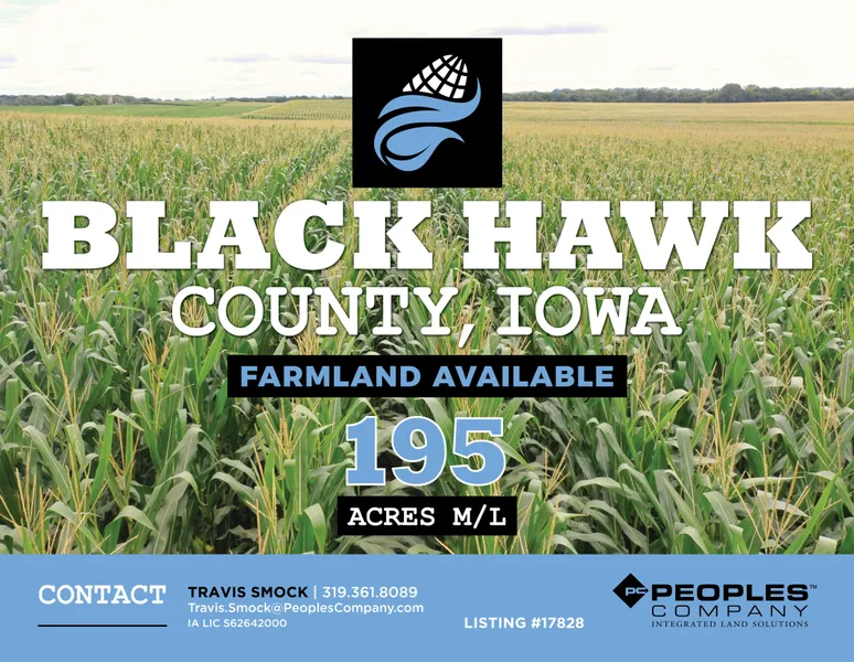 We are pleased to offer 195 acres m/l of productive farmland located in Black Hawk County, Iowa, northeast of La Porte City. This property features approximately 190 tillable acres with a CSR2 rating of 61.7 and is classified as Non-Highly Erodible Land (NHEL), making it a valuable asset for sustainable farming. The farm is nearly 100% tillable and was completely pattern tiled in 2010 presenting an excellent opportunity for investors or a substantial addition for any local farmer. Its close proximity to Interstate 380 enhances operational efficiency and provides easy access to major transportation routes and local markets. The farm has been well cared for and owner-operated. The current operator would be open to continuing to lease from an investor Buyer, offering the potential for a favorable return. The property is situated along Garling Road in Section 22 of Spring Creek Township, Black Hawk County, Iowa.