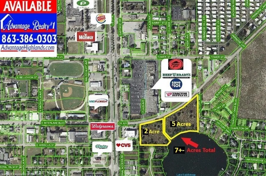 Prime 5+-Acres Commercially Across from the New Tractor Supply Store in Lake Placid & Adjacent to CVS Hard Corner! Zoned C-1 with conforming Land Use LP CG. Ideal for a Planned Unit Development, ALF, Commercial Lakeview Offices, etc. The perfect opportunity to add value to the Future corner CVS Hard Corner giving CVS (1.5ac) 3.5 Acre as most users will require 2+ acres like the new WaWa's did. The 5+-acres on CR 621 & Lake Saddlebags can be purchased for 675,000 (Only $135k per acre for more valuable commercial to add even more income to your project on the 1st two acres.