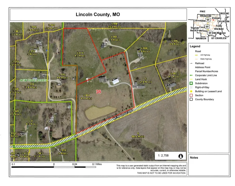 From Troy. take Highway 61 to Highway B, make a right on Highway B towards Elsberry, make a right on Highway W, left on New Hope Road and then property is on the right.