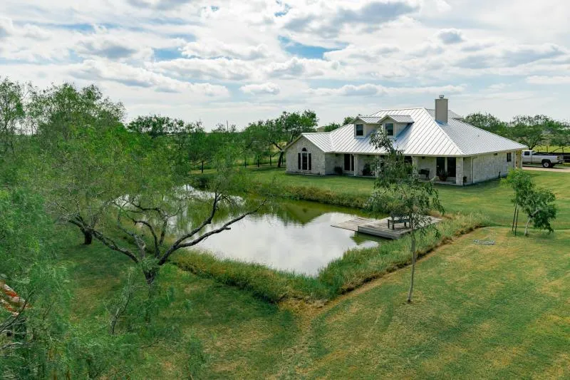 Truly designed for the distinguished Buyer! Custom rock home (rock sourced from Central Texas) with new standing seam metal roof and huge implement and horse barn (+/- 60x100') situated on over 10 acres. Existing Agricultural Exemption. Home features updated open kitchen with stainless steel appliances, island, and Corian countertops. Open living, dining, and kitchen concept. Master suite, two guest bedrooms, guest bath, and office downstairs. Loft space upstairs offers additional bedroom or living space. Detached garage and tree-lined drive provide beautiful entrance and plenty of parking options. Red Iron-constructed metal-sided barn has full industrial strength concrete slab and roof concepts, moveable horse stalls, office space, and additional bathroom. Large arena and round pen to convey. Crossfenced into several pastures. Two septics. Rerverse Osmosis water system. Home also plumbed for propane for future options. Properties like this only come along once in a lifetime!