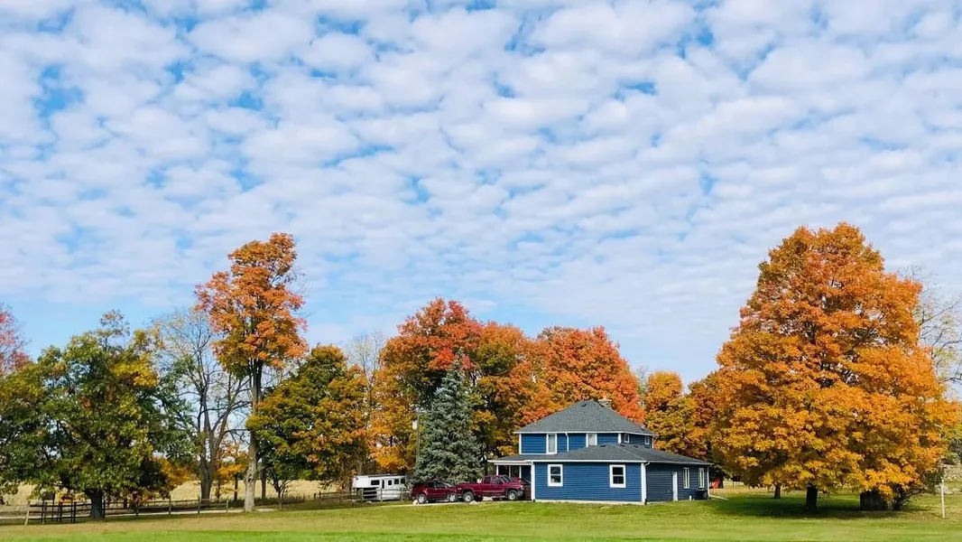 Taking a ride back across the 198 acres that surround the house and barns will really make you want to purchase this property. Trails run throughout the hills and ridges of mature oak, maple, cherry and occasional hickory trees that cover the landscape as well as open grassy fields that are full of the wildlife that lives in southern Michigan. Sit on one of these hills in the evening and watch the deer and turkeys as well as the ducks and geese that fly by and use the property.