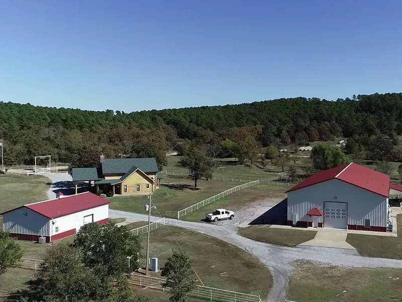 Terrain: 2,000 acres of scenic views, pine trees scattered across rocky terrain, flowing streams, bustling wildlife, and the tranquility of being off the grid. Rolling hills, mountains, pine and hardwood forests. The ranch sits adjacent to the McGee Creek Wildlife Management Area and McGee Creek State Park.