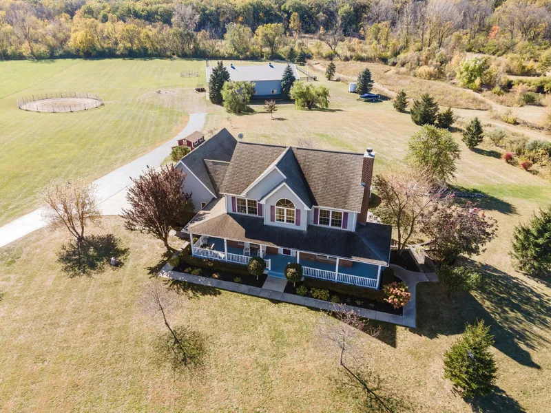 **MOTIVATED SELLER** COUNTRY RETREAT / PRIVATE HORSE PROPERTY; 10 ACRES, MODERN-DAY FARMHOUSE with a BARN and WORKSHOP - COMBINATION OUTBUILDING. This property sits high on a hill offering you a view of its natural beauty as you enter the long lane. 2-Story Modern Day Farmhouse with extra-wide wrap-around deck invites you to relax and enjoy nature. The 2-story foyer draws your eyes up, where you can't help but notice the top-of-the-line crown molding throughout the home. Upstairs you'll find 3 Bedrooms and 2 Full Baths. The Master Bath has a shower and separate jetted tub with a large window that overlooks the entire property. The main floor features the Living Room, Dining Room (Office), Half Bath and 1st Floor Laundry. The Open Kitchen and Dining plan shows off the Brazilian hardwood floors, granite counters and newer stainless steel and black appliances. There is also a half bath by the 3-car garage (with epoxy floor). FULL FINISHED WALK OUT BASEMENT features a large family room (for games and activities) including large movie screen ) along with a half bath and storage. Like to relax in your own back yard...and entertain≠ Step outside to the lower level, stamped concrete patio that is under the deck (shady for the hot summer sun) and just steps away from your refreshing pool. Professionally andscaped retaining walls with two staircases will lead you to the front or back yards or up to the deck. - This is where the views are the best! THE MINI BARN / CHICKEN HOUSE is well built and could be used in a variety of ways. THE POLE BUILDING is 50x80 and is part barn and part workshop. It features 16 ft sidewalls and 2 overhead doors that are 14 ft high. The barn features 8 stalls with matts and rubber pavers in the middle. The workshop portion has a concrete floor with drain, walled, insulated with an abundance of outlets. THE LAND...it's what the sellers love most about this property: large front yard, landscaped back yard, hay field, pasture and trails! There is a Forest Preserve just down the street and the house is less than 5 miles into town and 10 miles to I-90. Four of the major Hunter/Jumper show facilities are between 10 -70 min away. This property has been loved and well maintained. It is move-in-ready! This is a MUST SEE!!