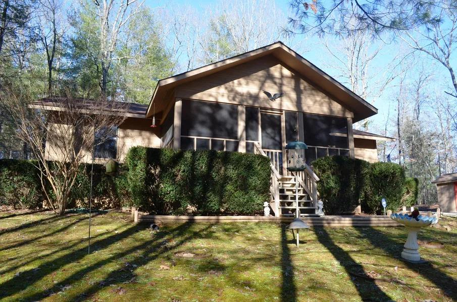 EASY LIVING , Simple Ranch w/ 2BR/2BA, Greatroom, Vaulted ceiling, Laundry Room, small gas log fplc unit, 2 master suites. Wonderful Screened porch, small fenced pet area, small carport w/ storage attached, also a detached storage shed. Wooded gentle land close to TVA Boat Ramp on Lake Nottley. Nice area with easy access. Plenty of parking area. All appliances included.