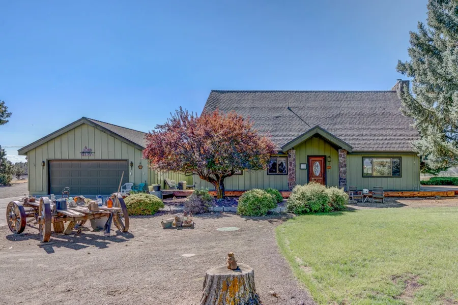 Stunning Cascade Mountain Views from country home in Tumalo. Property is 19.8 acres with pond and 12 acres TID water rights for pastures. Country Home is 3035 sq ft, 3 bedrooms, 2.5 bathroom, living room with wood burning stove, vaulted ceilings, dining area, office, bonus/game room and attached 2 car garage. House has beautiful outdoor living spaces with a covered porch, deck, large yard and fire pit. Outbuildings include: Hay Barn, Detached Garage/office, equipment shed and Indoor Arena for horses/livestock 11,280 sq ft with 6 stalls with runs, tack room, wash racks and 2 round pens. Property is close to riding trails. This is a wonderful opportunity to make this unique property your own!