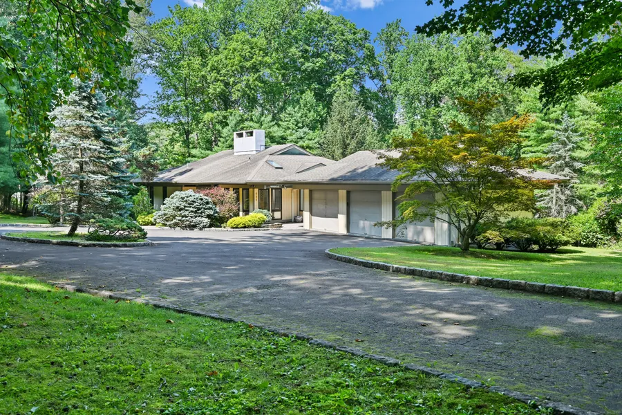 Tucked away at the end of a quiet cul-de-sac, this contemporary home offers nearly 4,500sq ft of light-filled living space with a flexible floorplan designed for today's lifestyle. Set on two serene and private acres, the home features dramatic walls of windows, soaring ceiling and seamless indoor-outdoor flow. Highlights include: 4 spacious bedrooms and 4 bathrooms. Vaulted living room with fireplace, skylights and French doors opening to a large rear deck. First floor primary suite with a bright skylit bath. Eat-in kitchen that opens to a beautiful glass-ceiling solarium. Walkout lower level with a cozy family room with fireplace and a large bedroom plus two additional rooms - ideal as a playroom, home office or exercise room. With space for everyone and just minutes from town, this home offers the perfect blend of privacy, comfort and convenience. Whole house generator.