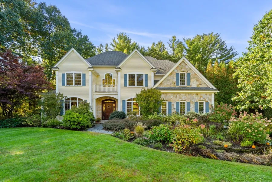 In Carlisle's most cherished neighborhood abutting conservation land, this luxurious home features gleaming woodwork, radiant heat throughout, custom built-ins, wine-cellar, in-ground pool and more. The brightly lit foyer is surrounded by library/living room with bookshelves, dining room and fireplaced family room. A chef's kitchen with breakfast bar adjoining 3-season porch, custom cabinets, subzero fridge, thermador range, marble counters and 2 story eating area is the heart of this home. The expansive primary bedroom suite offers a separate sitting area, built-ins, spa like bath with cathedral ceiling, jacuzzi and sky lights and large walk-in closet. The lower level is a great finished space with fireplace, windows and outside access, ideal for playroom or office. Gorgeously landscaped with wildflower garden and koi pond, this house has been meticulously maintained and updated. Short drives to Carlisle & Concord centers, award-winning schools and proximity to commuter routes