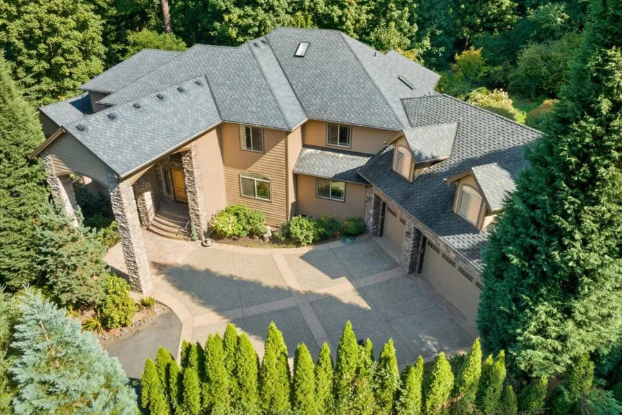 Unparalleled grandeur awaits you in this meticulously crafted custom home nestled on your own private two wooded acres. If you've been dreaming of a tranquil retreat that combines opulence with natural beauty, look no further. Tall ceilings grace every room, with an awe-inspiring 18' tall Great room featuring floor-to-ceiling windows that frame a captivating custom fireplace. This magnificent space overlooks the inviting pool area, complete with a serene water feature. Immerse yourself in a world of luxury with custom crown moldings, forged balusters adorning a circular staircase, rich tiger hardwood floors, and alder antique glazed cabinets. Wrapped windows with 4? molding and nutty alder oversized doors add an extra layer of sophistication. The heart of this home boasts rich granite countertops and top-of-the-line Electrolux-Icon appliances, making it a chef's paradise. The main floor ...
