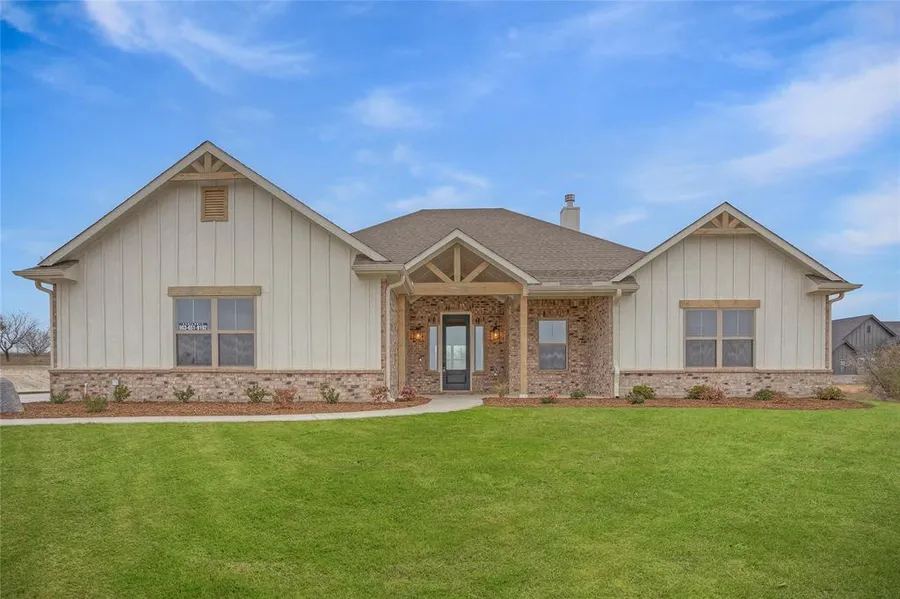 Brock ISD! The Reserve of Brock - Gorgeous views await you from this move-in ready, new construction home by Dalton Homes which features 4 BR, 2.5 BA, bonus room and sits on 2.01 acres in a quaint neighborhood with a personal water well and a 3-car garage. NO WATER BILL! The Marathon floor plan offers tons of natural light, an open concept floor plan, a utility room and two walk-in, large pantries. The kitchen opens to the family room and the dining area. Luxurious appointments include Quartz countertops in the kitchen, Shaker cabinets, decorative tile backsplash, stainless steel appliances, island with bar seating, wood passageway headers, decorative lighting, mud-bench, a brick wood-burning fireplace with a hearth and a wood mantle and a large, private covered patio and covered porch to watch the beautiful Texas sunsets. The spacious primary suite offers a large soaking tub, a walk-in ...