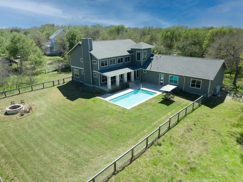 Must see, beautiful family retreat located just outside of Bastrop in the gated, equestrian River Crossing Community. This entertainers paradise features an open floorpan with a 2 story high cathedral ceiling in the living room, polished and stained concrete floors, huge, covered front porch and back patio with an in ground pool. Surrounded by huge trees, the environment lets everybody relax. Just minutes away from the Austin International Bergstrom Airport, downtown Austin and the city of Bastrop.