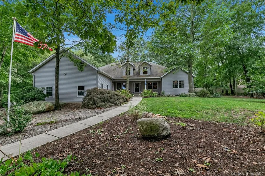 Privacy, easy one floor living, and versatility of space characterize this custom contemporary ranch sited on two acres down a picturesque winding drive. A fireplace and new hardwood floors highlight the cathedral ceiling family room. The kitchen is complete with solid oak cabinetry, granite counter tops and stainless steel appliances. A finished open staircase leads to the 2nd floor that offers an additional 835 sq ft of possible expansion or great attic space. When you walk in the front door there is an office/den behind French Doors or it could be a fourth bedroom. French Doors are also featured in the Master Bedroom leading to its own deck overlooking the private backyard. Oversized three car garage. Two year home warranty covers the house mechanicals. East Lyme offers all the amenities of the CT Shoreline including beaches, boating and proximity to the I-95 commute corridor. This home offers total privacy with all conveniences only minutes away.