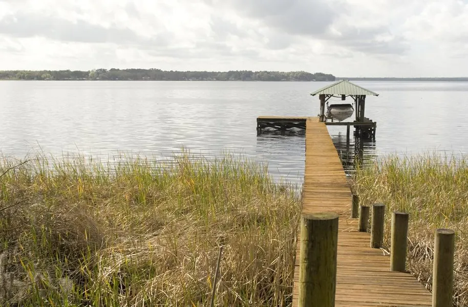 Waterfront paradise boasting spectacular views! This 4BR/3BA home sits on a high bluff overlooking the beautiful St. Johns River with 105 ft frontage. A welcoming deck and dock with covered boat-lift are perfect for riverfront living. Double door glass entry allows for lovely views from the living room and spacious kitchen. The master bedroom also overlooks the water and features a large bath with separate shower and jet tub. The game room is perfect for a pool table and much more. All on a 2+ acre lot with gorgeous old oak trees.