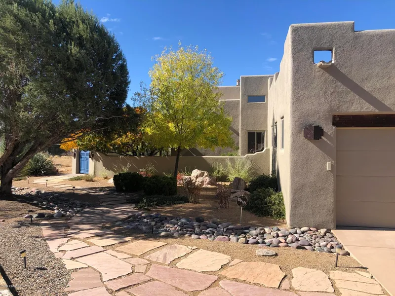 Santa Fe Style Home w/ Workshop & Studio. on 2 Acres! Workshop/single car access Approx. 700 sf; Heated&Cooled with built-in Dust collection system; multiple 220 outlets. Studio approx. 988sf; a Quilter's dream, or home office, guest suite. Generous workspace for quilting machines; huge walk in storage closet, full bath, Kitchenette and insulated oversized single car garage. Main home; lots of windows, Anderson sliding doors. Spacious Kitchen with islands, walk in pantry. Cook top is electric & plumbed for gas. living room has high efficiency fireplace; ceiling adorned with wood beams. Master and 2nd guest bedroom have walk in closets & exterior glass doors to covered patios. Beautifully Landscaped w stone pathways & lots of trees for Privacy & Beauty. Fruit Tree & Grape V