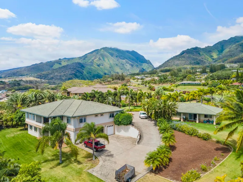 Welcome home. Prominently positioned in one of Wailukus most esteemed residential neighborhoods, Wailuku Country Estates, lies 404 Maika St., a modern + thoughtfully-designed custom home that boasts jaw-dropping ocean + mountain views, a highly-desired open concept floor plan and unrivaled proximity to Mauis historic Wailuku town + neighboring areas. Perched on nearly two acres, this home encompasses 4,265 +/-SF with 6 bedrooms, 4 bathrooms and a detached ohana. Meander along the driveway and find yourself surrounded by luscious foliage that envelopes the property, inviting you to the entrance where youre captivated by an open and inviting great room that flows seamlessly onto the spacious lanai, overlooking Mauis East Side + offering panoramic ocean views the perfect spot to enjoy a peaceful cup of joe as you watch the sunrise. The elegant kitchen is equipped with ample cabinet + counter space, an island with bar seating, and generously appointed modern appliances family dinners never looked better. Also located upstairs is the opulent master bedroom with en-suite bathroom offering a dual vanity, walk-in shower and spa-soaking tub for a true resort-like feel. The master bedroom also features access to the lanai. Adjacent to the living room and completing the second level are three bedrooms and a generously laid-out office space, making work from home an absolute breeze! Downstairs, the home is transformed into an entertainers paradise featuring two guest bedrooms + one bathroom, a gameroom, in-home movie theater and an additional primary living area with seamless access onto the backyard lanai and meticulously-manicured lawn area. To the right of the main residence is a timeless detached ohana encompassing 997 +/- SF with 2 bedrooms and 2 bathrooms. Conveniently situated just minutes from Wailuku, this property allows you to experience the best of rural solitude while enjoying unrivaled proximity to everything Maui has to offer a blissful escape in a quiet corner of paradise.