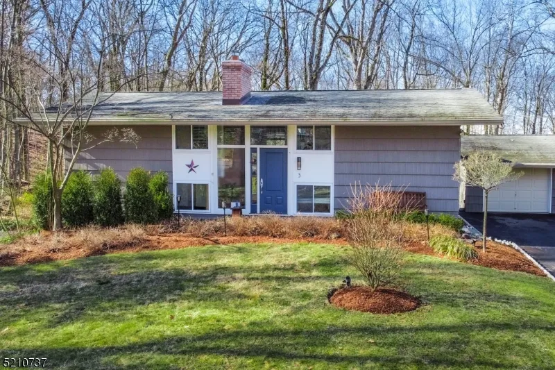 Your Own Peaceful Oasis Awaits! Immaculate and Ready for Move Custom style home on a quiet street in a private neighborhood, boasts 4 bedrooms, 2.5 baths and is situated on over 2 acres with lush landscaping offering great curb appeal! This unique home offers the perfect balance of peaceful suburban living and close proximity to shopping, dining, major highways and the NYC Mid-town direct train. The main level of this home provides open floor plan and a great setting for inside and outside entertaining. The sun-filled living room with wood burning fireplace opens to the kitchen is the centerpiece of the home. The spacious kitchen features Maytag dishwasher, SS appliances, granite counters and large breakfast bar. The kitchen and the living room combo overlook an extraordinary backyard for outdoor gatherings or just as your own peaceful oasis. Additionally, the first floor features formal dining room, bedroom - currently home office and a powder room and laundry. The upper levels incorporate 2 generously sized bedrooms and a master suite with walk-in closet and master bath with marble walls and marble headed floor, shower and jetted tub. Master bedroom offers motorized curtains with remote control. Large garage with a custom built workbench and storage loft. Newly installed driveway and freshly painted inside and out. Top-rated Denville schools, and all public utilities! Imagine the lifestyle you'll create here, and the lifetime of the memories you'll make!