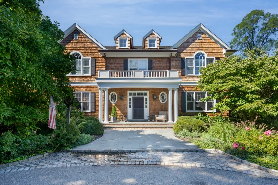 Hamptons style residence perfectly placed on 2 manicured acres with tennis court and covered porch. The Dramatic two story entryway opens into a Custom designed great room room with fireplace .There is a formal living room, dining room, elegant library wrapped in gracious cabinetry and woodwork, gourmet kitchen with breakfast area ,incredible bar /service room, large mudroom and laundry. 1st floor bedroom suite with bath. Second floor has spacious primary bedroom and bath ,3 additional bedrooms and two baths.The finished lower level is designed with exercise, media and play areas along with a bedroom/bath and storage rooms. Cold Spring Harbor Schools, Lloyd Harbor Beach,mooring ,tennis and camp